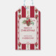 Weihnachtsessen Party rote Retro-Streifen Kiefernbogen personalisiert Weihnachtsgeschenk-Tags, mit Monogramm Weihnachtsgeschenk-Tags, pinecone Winter Grün Weihnachtsgeschenk-Tags, personalisierten Namen Weihnachtsgeschenk-Tags