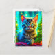 Hübsches Kätzchen sitzend vor beleuchteten Weihnachtsbäumen personalisierte Weihnachtspostkarte.