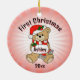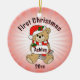 Ein süßer Teddybär auf roter Sternexplosion mit individualisierbarem Namen & Datum vorne und hinten. Schriftart und Textfarbe können ebenfalls geändert werden.
