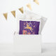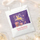 Fun Rentier im Schnee fügen Sie Ihren eigenen Text oder Name Weihnachten Party Dank Ihnen Geschenktasche in rot lila blau, weiß und gelb. Ideal für Ihre Weihnachtsgeschenke. Feines, lustiges Design mit einem Rentier, der über Boxed-Geschenke in festlichen Farben springt. Personalisieren Sie mit Ihrem Gruß und Familiennamen, liest derzeit Happy Christmas aus der Familie Dickens.