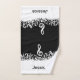Vervollkommnen Sie für den Musikfreund oder den Musiker mit einem ins Auge fallenden modernen Entwurf, der weiße durcheinandergebrachte musikalische Anmerkungen und einen großen dreifachen Clef auf einem klassischen schwarzen Hintergrund kennzeichnet. Der Entwurf umfaßt kundengerechten Text für einen Namen oder Text Ihrer Wahl, um ein einzigartiges und personalisiertes Musikgeschenk herzustellen.