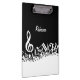 Vervollkommnen Sie für den Musikfreund oder den Musiker mit einem ins Auge fallenden modernen Entwurf, der weiße durcheinandergebrachte musikalische Anmerkungen und einen großen dreifachen Clef auf einem klassischen schwarzen Hintergrund kennzeichnet. Der Entwurf umfaßt kundengerechten Text für einen Namen oder Text Ihrer Wahl, um ein einzigartiges und personalisiertes Musikgeschenk herzustellen.