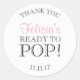 Herrliche individuelle Dankbarkeit Sie BEREIT zum POP (oder ändern Sie zu ABOUT TO POP Babydusche Aufkleber / Etiketten mit weißem Hintergrund und Rosa und Weiß Text (Hintergrundfarbe kann geändert werden, um alle Farben Party). Fügen Sie Ihren Text hinzu. Schriftart, Farbe und Größe können geändert werden.