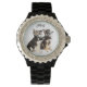 Zwei süße deutsche Hirtenjungen schätzen diese Qualitätsuhr. Text ist leicht personalisiert.