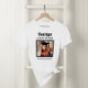 Modernes und minimales Design mit weißem Abschluss-T - Shirt zeichnet sich durch ein quadratisches Foto des Absolventen gerahmt in schwarz mit einfachen und klassischen Vornamen, Klassenjahr und Schulnamen, die personalisiert werden können. Shirt-Farben und Stil können so angepasst werden, dass sie sich mit den Farben der Schule oder des Party abstimmen.