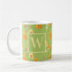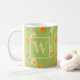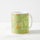 Diese Tasse aus Monogramm hat ein niedliches Blumenmuster auf grünem Hintergrund.