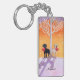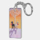 Personalisierter Winter Labradors Painting Schlüsselanhänger für Labrador Fans! Sweet und berührend Labrador Retriever in weißem Schnee. Der unschuldige schwarze Labrador und der gelbe Labrador sind hinter dem Winterbaum mit jeweils rotem Herz stehend. Schöne Sonnenuntergangsszenerie im Winter. Viele Herzen auf dem Bild. Gemalt von Naomi Ochiai aus Japan.