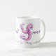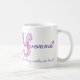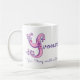 Hand gezeichnete Name-Bedeutungs-Tasse des Buchstaben Y. Hübsche Herz- und Blumen-Hauptstadt zeichnen Monogramm gekritzelten typografischen Entwurf Y ab, der Herzen und Blumen kennzeichnen und die Wörter Yvonne, Eibe. Stark, vielseitig und vibrierend in den rosa und lila Farben. © einzigartige Kunst und Entwurf durch Sarah Trett. www.sarahtrett.com für www.mylittleeden.com auf zazzle