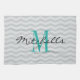 Personalisierter Familienname Monogramm graue Zickzack Küchentücher. Niedliche Küche / Kochgeschenkidee für hausgemachtes Party, frisch gezapftes Paar, Gastgeschenk Hochzeit, Verlobung, Jubiläum etc. Stilvolle Zickzackstripe Design mit individuellem mit Monogramm Anfangsbuchstaben und Schrifttyp. Fügen Sie Ihren eigenen Nachnamen hinzu. Türkisblau und graue Zickzackdrucke.