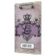 Das schöne Vintage Design verfügt über eine Zwischenablage mit einem lila Zickzack gestreiften Hintergrund mit einem schwarzen Regal-Design-Banner mit einer Krone und dekorativen Wirbel mit Text, der Live Simply Lgh Oft Liebe Tief liest. Es hat auch ein Vintag-schwarz-weiß Banner, dass Sie einfach Ihren Namen hinzufügen können, um zu personalisieren!