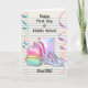 Ein personalisiert glücklicher erster Tag der Mittelschulkarte für Ihre Tochter, Schwester, Enkelin, etc. Auf der Vorderseite befinden sich ein Rucksack, ein Notizbuch und niedliche Schuhe sowie ein pastellfarbener Blitz, der mit einem ausgekleideten Schulpapier auf der Vorderseite der Karte aufgereiht ist. Sie können ihren Namen leicht personalisieren, und die Insider-Kartenmeldung kann auch personalisiert sein, wenn sie gewollt wird. Das ist eine wunderbare Art, sie zu unterstützen und zu ermutigen, wenn sie mit der Mittelschule beginnt.
