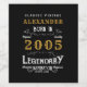 Ein personalisiertes klassisches Weinflaschenlabel für dieses Geburtstagsfest für jemanden, der 2005 geboren und 20 Jahre alt ist. Fügen Sie den Namen zu diesem Vintagen Retrostil Schwarz, Weiß und Gold für ein individuelles 20. Geburtstagsgeschenk hinzu. Bearbeiten Sie den Namen und das Jahr einfach mit der Vorlage. Ein wunderbares, individuelles, schwarzes Geburtstagsgeschenk. Mehr Geschenke und Party für die Feier des 20. Party mit dem "Legendary" Design im Laden verfügbar.