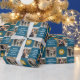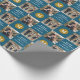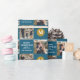 Personalisierter 2-Foto Monogram Blue Gold Holiday Geschenkpapier