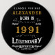 Ein personalisierter riesiger Knopf / Button Abzeichen für den Geburtstag Person geboren im Jahr 1991 und 30. Fügen Sie den Namen zu diesem Vintagen Retro-Stil Schwarz, Weiß und Gold-Design für ein maßgeschneidertes 30. Geburtstagsgeschenk. Bearbeiten Sie den Namen und das Jahr einfach mit der Vorlage. Ein wunderbares, individuelles, schwarzes Geburtstagsgeschenk. Mehr Geschenke und Party-Vorräte für die 30. Party-Feier mit dem "Legendary"-Design im Laden verfügbar.