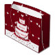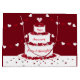 Personalisierter 40. Ruby Hochzeitstag große Geschenktasche in bordeauxrot mit einer Bundung und 3 Tiered Kuchen Design.