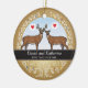 Feiern Sie den goldenen Hochzeitstag Ihrer liebevollen Paare der Lieblingsnatur mit diesem kundengerechten Andenken! Weiße Niederlassungen und Vögel auf einem Goldbraunhintergrund umgeben ein Paar weiß-angebundene Rotwild, die jedes sind, das an ein Herz denkt. Zwei Namen, Zahl von Jahren zusammen, wedding Jahr und laufendes Jahr werden nahe der Mitte gekennzeichnet und können personalisiert sein. Vervollkommnen Sie für ein liebevolles Paar, das Liebe das Freien auch.