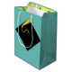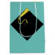 Creative Abschluss Geschenktasche mit kreativem Schwarz-Gold-Cap-Design auf aquamarinem, blauen Hintergrund. So personalisieren Sie Text bearbeiten, um den Namen des Grades hinzuzufügen.