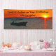 Was für ein einzigartiges Banner für eine Ruhestand- oder Graduierungspartei. Ein Hintergrund unseres Originalfotos eines Fischerbootes in Silhouette bei Sonnenuntergang, mit orangefarbenem Himmel. Zwei Zeilen schwarzer Text Ihrer Wahl - geeignet für jede Gelegenheit.Wählen Sie Innen- oder Außenmaterial aus. Alle Rechte vorbehalten © 2016 Alan & Marcia Socolik.