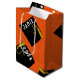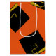 Creative Abschluss Geschenktasche mit schwarzen und goldenen Graduierungskappen auf orangefarbenem Hintergrund. Bearbeiten Sie Text, um den Namen und das Senior Class Jahr des Absolventen hinzuzufügen.
