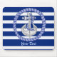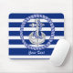Navy Blue und White Stripes bedecken den Hintergrund dieses wunderbaren Ankermauspads, das Sie personalisieren können.
