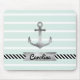 Modernes Mousepad mit grauem Aquarellanker auf einem minzgrünen und weiß gestreiften Hintergrund. Sie können das Design auch mit benutzerdefiniertem Text unter dem Anker personalisieren.