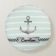 Modernes, rundes Kissen mit grauem Aquarellanker auf einem minzgrün-weiß gestreiften Hintergrund. Sie können das Design auch mit benutzerdefiniertem Text unter dem Anker personalisieren.