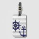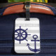 Dieses dekorative Design besticht durch einen dunkelmarineblau-Anker und ein Bootrad mit weißen Streifen. Die nautische Abbildung schafft ein modernes und einzigartiges Gepäckanhänger mit personalisiertem Text und Hintergrundfarbe.