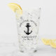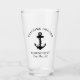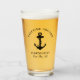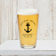 Ein mit Monogramm Bier-Glas zum Thema Wassersport für die Gäste Ihres Bootes mit einer Abbildung eines schwarzen Ankeres. Personalisieren Sie den Text "Welcome Bard" und den Namen und die Lage Ihres Bootes in eleganter Typografie.
