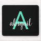 Maßgeschneiderter mit Monogramm mädchenhafter Schriftname und erstklassige schicke, moderne und elegante mädchenschwarze und trendige aquamarine Add Your Name Mouse Pad sind personalisiert und perfekt für das Büro, Hausschule, Uni, zurück zur Schule, Sweet 16, Geburtstagsparty, Hochzeiten, Quinceanera, Brautparty, Junggeselinnen-Abschied, Jubiläum oder Kinderdusche.