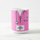 Kreative ärztliche Wertschätzung, Geburtstag oder Abschluss Geschenk-Tasse, mit rosa Krankenhaus-Peeling und ID-Tag-Illustration. So personalisieren Sie Text bearbeiten, um Namen hinzuzufügen.