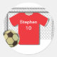 Ein rotes Fußballfußball-Shirt, um mit einem Namen und einer Nummer zu personalisieren. Kann verwendet werden, um Tasse Kuchen Topper, Party Taschen Etiketten, Tischdekor oder jedes andere Projekt.