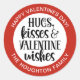 Ein niedlicher Rot- und Schwarz-Valentinstag Sticker mit den Worten, Umarmungen und Valentinwünsche. Personalisiert mit Ihrem Namen für Ihre Valentinstag Geschenke und Leckereien. Entworfen für Sie von BlackBerry Boulevard.