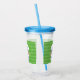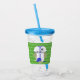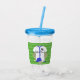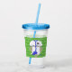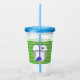 Niedliches Baseballdesign. Auf der Vorderseite ein blau-weiß gestreiftes Baseball-Trikot, das mit einem Namen und einer Zahl, einem blauen Baseballdeckel, Baseball und Baseballschläger individuell gestaltet werden kann. Im Hintergrund befindet sich ein Baseballfeld.