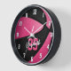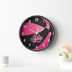 Die personalisierte Basketballwanduhr für Mädchen besteht aus einem Basketball mit abwechselnd rosa und schwarz aufgefärbten Paneelen und einer Zahl der Uhren - personalisieren Sie mit dem Spielernamen in einem Schriftart im "Autogramm"-Stil, der sich über der Jerseynummer des Athleten befindet - von katz_d_zynes