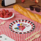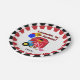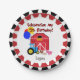 PapierTeller des personalisierten Bauernhof-5. Geburtstages, niedlich und bunt, groß für die Bauernhof- oder Viehthemageburtstagsfeier! Diese bewirtschaften Tellereigenschaft des fünften Geburtstages des Themas Papieraußerhalb der dekorativen Ringe von Schwarzem, von Gelbem und Rot mit einer roten Heuscheune, einem Schwein, einem Huhn, blauen einem Bauernhoftraktor, Geburtstagsballonen, einem Text, der das Feiern meines 5. Geburtstages liest, und einem Bereich, die Sie den Namen des Geburtstagskindes addieren können!