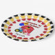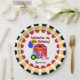 PapierTeller des personalisierten Bauernhof-6. Geburtstages, niedlich und bunt, groß für die Bauernhof- oder Viehthemageburtstagsfeier! Diese bewirtschaften Tellereigenschaft des 6. Geburtstages des Themas Papieraußerhalb der dekorativen Ringe von Schwarzem, von Gelbem und Rot mit einer roten Heuscheune, einem Schwein, einem Huhn, blauen einem Bauernhoftraktor, Geburtstagsballonen, einem Text, der das Feiern meines 6. Geburtstages liest, und einem Bereich, die Sie den Namen des Geburtstagskindes addieren können!