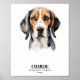 Feiern Sie Ihren Beagle mit diesem maßgeschneiderten Aquarellposter. Mit ihrem Namen, ihrem Geburtsdatum und ihrer Rasse ist es eine herzliche Hommage an deinen wütenden Freund.