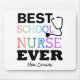 Beste Schulkrankenschwester-überhaupt personalisierte Typografie-Mausunterlage für Schreibtisch. Stethascope mit den Aquarellbeschaffenheits-Regenbogenbuchstaben, die BESTE SCHULE buchstabieren, PFLEGEN ÜBERHAUPT. Personifizieren Sie mit Namen oder löschen Sie Text, um Namen zu entfernen. Spaßgeschenk für Ihre Lieblingsschulkrankenschwester. Bunte und moderne Typografie.