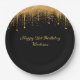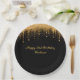 Schwarz und Gold tropfende Glitzer Geburtstagsparty-Teller, Bearbeiten Sie den Text für Ihr Jahr und den Namen und alle anderen Informationen, die Sie hinzufügen möchten.