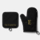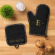 Personalisierter Black & Gold Oven Mitt und Pot Ho Ofenhandschuh & Topflappen-Set