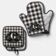 Personalisierter Black & White Buffalo Karo Ofenhandschuh & Topflappen-Set
