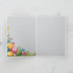 Feiern Sie Ostern mit dieser süßen und eleganten personalisierten Karte mit einem charmanten blauen Wasserhasen, der zwischen wunderschön gemusterten Ostereiern und zarten Frühlingsblumen sitzt. Der weiche pastellfarbene Hintergrund, die handgemalten Details und die sanfte dekorative Umrandung schaffen ein zeitloses Frühlingsdesign, das warm, bedacht und perfekt für einen besonderen Familienmoment ist.
