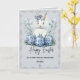 Feiern Sie Ostern mit dieser süßen und eleganten personalisierten Karte mit einem charmanten blauen Wasserfarb-Hasen, der zwischen wunderschön gemusterten Ostereiern und zarten Frühlingsblumen sitzt. Der weiche Pastellhintergrund, die handgemalten Details und der sanfte dekorative Rahmen schaffen ein zeitloses Frühlingsdesign, das warm, durchdacht und perfekt für einen besonderen Familienmoment ist.