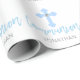 Reizendes personalisiertes erstes Zeremonie-Verpackungspapier der heiligen Kommunion für Jungen. Helles blaues Pastellkreuz mit Imitatdiamanten in der Mitte und in der Kommunion in den modernen Skriptbuchstaben. Esy, zum des Namens des Jungen zu redigieren und zu addieren. Vervollkommnen Sie für die Geschenkverpackung oder Tabellenläufer.