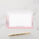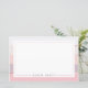 Hintergrund und Rückseite des Schreibpapiers zeichnen sich durch breite Streifen in den Farbtönen von Weiß und Lavendel mit dünnen Streifen aus metallischer Rose Gold, die die Farben teilen. Dünne Grenze und individuelle Name vorne.