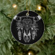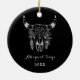 Dieses Weihnachtsbaumschmuck ist mit einem Bohemischen Stammesschädel mit Blume und Federn geschmückt, die alle in Schwarz-Weiß-Tönen gehalten sind. Die Rückseite ist mit einem Namen, einem Jahr oder einem Text personalisiert, den Sie hinzufügen möchten. *