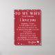 Personalisierter Brief an meine Ehefrau, Paare Val Leinwanddruck