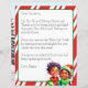 Fügen Sie dem personalisierten Brief des Weihnachtsmannes den Namen Ihres Kindes hinzu. Niedliche Vintage Wasserfarbe Retro kleine Afrikaner=amerikanische Elfen lächeln. Zurück hat ein Nordpol-Schild mit leuchtenden Weihnachtsbeleuchtung und einem schneebedeckten Hintergrund mit einer Briefmarke vom Santa und dem Nordpol. Kerzenhalterung.