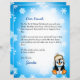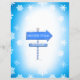 Fügen Sie dem personalisierten Brief des Weihnachtsmannes den Namen Ihres Kindes hinzu. Niedlicher Pinguin im Winter Hut mit Schneeball, Schneeflocken, blauem Hintergrund und Nordpol Schild.