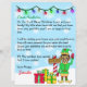 Fügen Sie dem personalisierten Brief des Weihnachtsmannes den Namen Ihres Kindes hinzu. Niedlicher Santa, Nordpol Schild und Elf und Schneeflocken Vintag aussehendes Papier. 2020 Nostalgischer Sake ethnischen (schwarzen oder hispanischen) Santa und Elf in Facemask behaltend sicher vor der Pandemie.